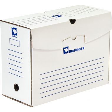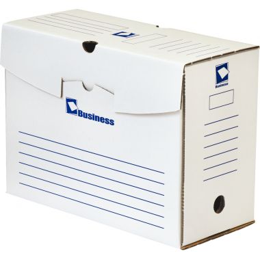 Paquet de 50 boites d'archives 34x25cm dos 15cm MBUSINESS. Dimensions montée : Longueur 34 x Hauteur 25 cm.Fond blanc, impression bleue. Carton ondulé rigide blanc. Impression à la verticale et à l'horizontale pour lecture sur petit et grand côté. Montage simple et rapide. Livré à plat.