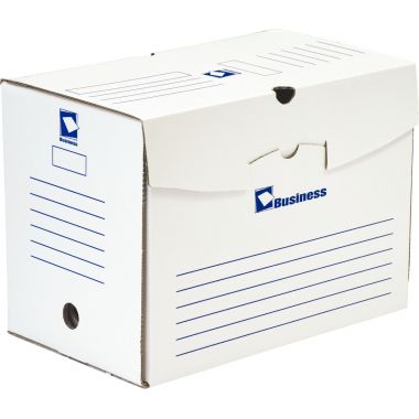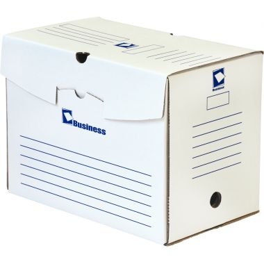 Paquet de 50 boites d'archives 34x25cm dos 20cm MBUSINESS. Dimensions montée : Longueur 34 x Hauteur 25 cm.Fond blanc, impression bleue. Carton ondulé rigide blanc. Impression à la verticale et à l'horizontale pour lecture sur petit et grand côté. Montage simple et rapide. Livré à plat.