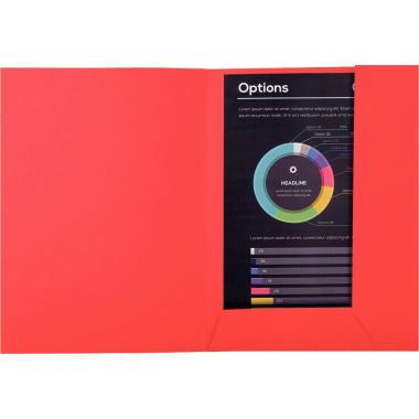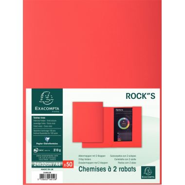Paquet de 50 chemises 2 rabats ROCK"S 210g, format 24x32 cm, rouge. Chemise de présentation avec 2 rabats pour maintenir les documents. Pour format A4.