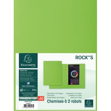 Paquet de 50 chemises 2 rabats ROCK"S 210g, format 24x32 cm, vert