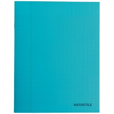Piqûre 48 pages MAJUSCULE, format 17x22 cm, seyès 80g, couverture polypropylène bleu