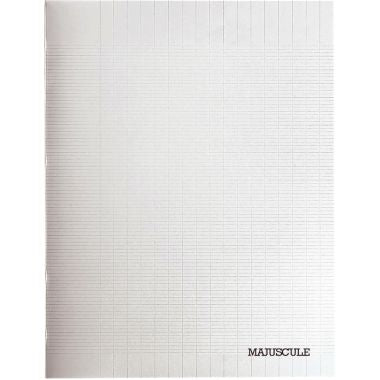 Piqûre 48 pages MAJUSCULE, format 17x22 cm, seyès 80g, couverture polypropylène incolore