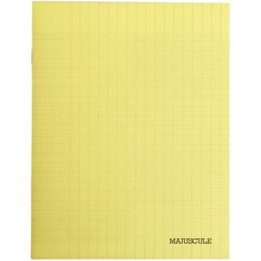 Piqûre 48 pages MAJUSCULE, format 17x22 cm, seyès 80g, couverture polypropylène jaune