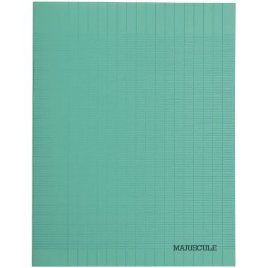 Piqûre 48 pages MAJUSCULE, format 17x22 cm, seyès 80g, couverture polypropylène vert