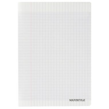 Piqûre 96 pages MAJUSCULE, format A4, papier blanc 90g, seyès, couverture polypropylène incolore