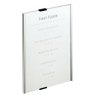 Plaque de porte INFO SIGN 297x210mm Argent Métallisé. Plaque format portrait , pour signalisation intérieure, conçue en aluminium avec façade de protection amovible en acrylique antireflet de 2mm.Livrée avec vis ou pastilles adhésives double face.Les planches d'étiquettes sont personnalisables par ordinateur => logiciel téléchargeable sur : www.durable.fr