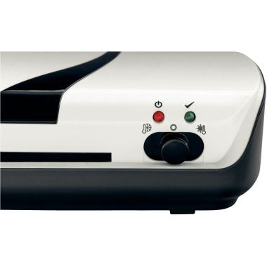 Plastifieuse Inspire+ A3 blanc. Temps de préchauffage : 4 min. Vitesse de plastification : 8 pochettes en 10 min. Plastifie les pochettes jusqu'au 125µ. 2 rouleaux chauffants. Réglage à froid pour utilisation avec les pochettes de plastification auto-adhésives à froid. Levier de déblocage manuel en cas de mauvaise insertion de la pochette. Indicateur LED. Réglage de la température. Livrée avec un kit de 5 pochettes de plastification A4 2x75µ. Dimensions (L x H x P) : 350 x 60 x 130 mm. Garantie 2 ans.