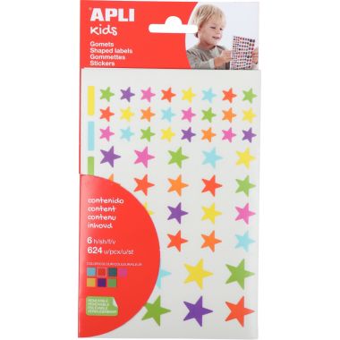 Pochette 624 gommettes étoiles couleur peps. 6 feuilles de 104 gommettes étoiles. 7 couleurs peps sur la planche :bleu clair, orange clair, orange foncé, fuchsia, jaune, pourpre, vert.. Faciles à détacher de leur support. Ludiques et pédagogiques, les gommettes permettent aux enfants de développer leur imagination et leur habileté. Format 10 - 14 et 20 mm