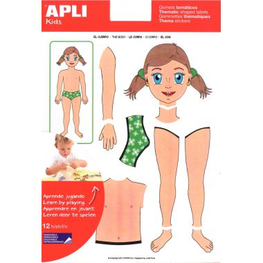 Pochette de 156 gommettes corps repositionnables. Développées en collaboration avec des éducateurs. Adhésif enlevable, permet de coller et décoller. 12 planches mix garçon et fille.