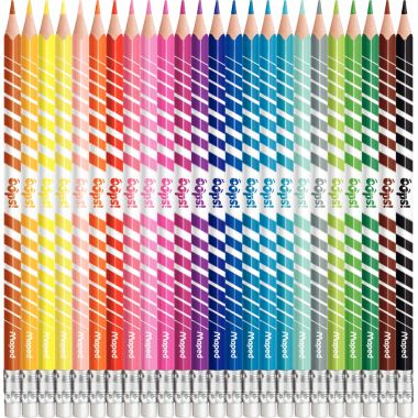 Pochette de 24 crayons de couleur Oops effaçables. Doté d'une gomme intégrée, ce crayon de couleur permet de facilement corriger les erreurs en gommant des zones de coloriage. Mine résistante et facile à tailler. Couleurs vives et intenses. Forme triangulaire pour une bonne prise en main. Mine : 3mm Diamètre du crayon : 7mm Longueur du crayon : 18,5cm