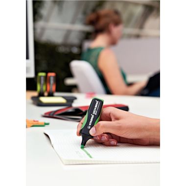 Surligneur rechargeable fabriqué en plastique recyclé à 83%. Zone grip antidérapante pour un meilleur confort. Peut rester ouvert 4h sans sécher. Fluorescence intense et persistante. Pointe biseautée, largeur de tracé : 2 à 5mm. Encre à base d'eau.