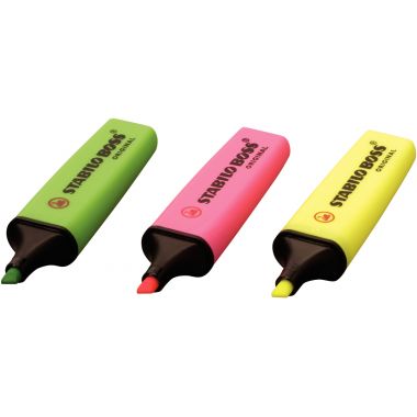 Surligneur à encre universel à base d'eau. Résistance intense à la lumière sur tous les papiers, fax, autocopiant. Tracé de 2 à 5 mm pointe biseautée. Coloris : jaune, rose, vert, orange, bleu, rouge, lilas, turquoise.