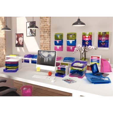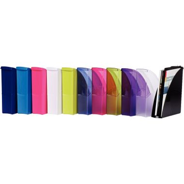 Porte-revues HAPPY rose. Accepte les documents jusqu'à 24 x 32 cmParois pleines facilitant l'introduction des documentsGrande capacité grâce au dos de 8 cmPolystyrene anti-choc recyclableColoris roseDimensions : 265 x 82 Haut. 310 mm