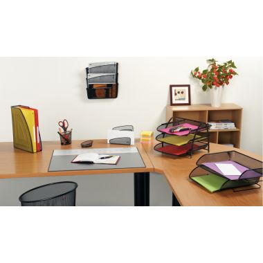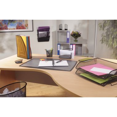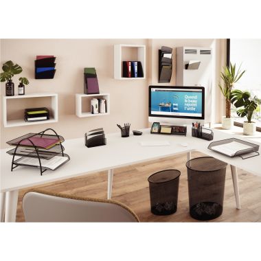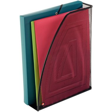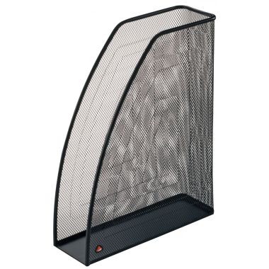 Porte-revues MESH en métal noir. Pour documents jusqu'au format 24 x 32 cm. Largeur dos : 8cm. Sa structure perforée permet une parfaite identification des dossiers. Métal Mesh ultra résistant et solide. Dimensions : l.8,5 cm x H.33,5 cm x P.26 cm. Garantie : 2 ans.