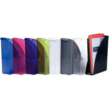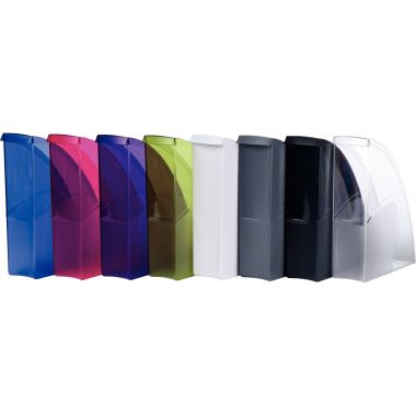 Porte-revues MINERAL gris orage. En polystyrène antichoc, de finition contrastante mat sur fond brillant, donne un aspect qualificatif au produit de forme au design courbe lui assurant un esthétique renforcé. Accepte les documents au format A4 et 24 x 32 cm. Se range facilement sur toutes les étagères, excellente stabilité. Dimensions : 25.4 x 31 x 8 cm.