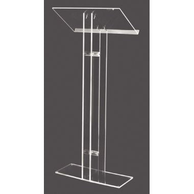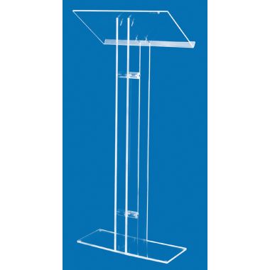Pupitre de conférence pléxi/cristal. Utilisation parfaite pour une conférence, un séminaire ou une présentation orale. Ce pupitre peut aussi servir de support d'exposition à un livre ouvert ou un autre type de document. Tablette inclinée 30° vers l'avant avec rebord de 3cm. (H32XL50cm). Le pupitre est facilement transportable. Composé de pieds en plexi, épaisseur 10mm et tablette en plexi, épaisseur 5mm. Poids : 8kg Dimensions hors tout H104xL50xP32 cm.