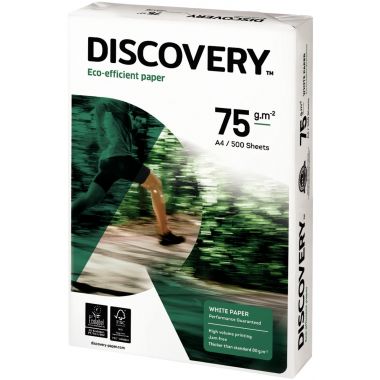 Ramette de 500 feuilles format A4 75g blanc DISCOVERY. Spécialement destiné aux gros consommateurs. La pâte eucalyptus utilisée pour la fabrication apporte à ce papier les caractéristiques techniques des 80 g classiques. Bonne alternative économique. Indice de blancheur CIE : 161.