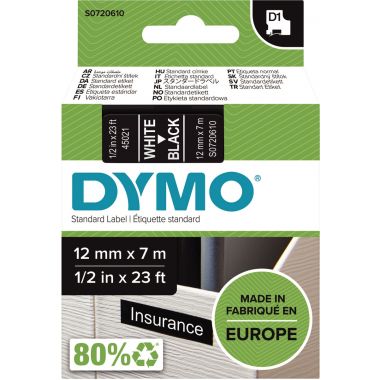 Recharge DYMO D1 12 mm x 7 m blanc sur noir