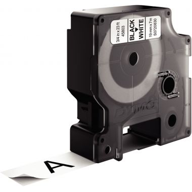 Recharge DYMO D1 19 mm x 7 m noir et blanc 19 mm. Système D1 a mono-cassette pour modèles : 1000 / 1000+ / 2000 / 3500 / 4500 / 5500 / LP 100 / LP 200 / LP 300 / LM 100 / LM100+ / LM 150 / LM 200 / LM300 / LM 350 / LM400 / LM PC / Pocket.Ruban encreur et ruban support associés offrent une totale facilité d'utilisation du système. Support plastique. Les étiquettes imprimées s'utilisent toutes de la même façon. Elles adhèrent sur la plupart des surface propres et planes ( papier, plastique, métal, bois, verre ).Résistantes à l'eau, au pétrole et aux graisses de même qu'à la plupart des solvant doux.Elles résistent également aux températures situées entre - 30° et + 150°C.