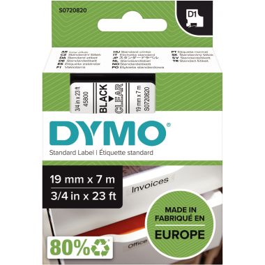 Recharge DYMO D1 19 mm x 7 m noir et transparent 19 mm