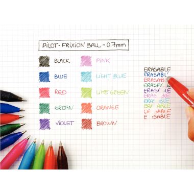 Roller Frixion Ball turquoise. Ecriture moyenne, pointe 0.7 mm, tracé 0,4 mm. Encre gel thermosensible : il écrit, efface et réécrit. Effaçage par frottement et échauffement de l'embout gomme sur le papier. Grip caoutchouc. Grande douceur d'écriture, idéal pour l'école. Rechargeable.