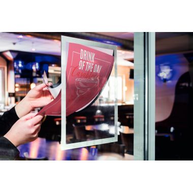 Sac de 2 cadres d'affichage A4 adhésif repositionnable avec contour magnétique argent