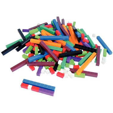 Sac de 241 réglettes mathématiques. Sachet de 241 pièces (1cm de côté).10 tailles et 10 couleurs. A partir de 3 ans.