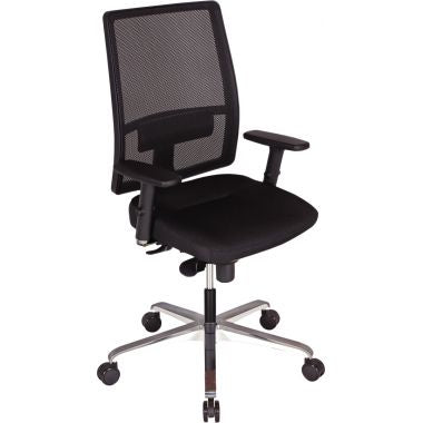 Siège manager ergonomique Bizzi Mesh XXL noir. Mécanisme synchrone réglable en intensité selon le poids de l'utilisateur. Assise anatomique élargie. Epaisseur de mousse: assise 70mm densité 40kg/m3, dossier 50mm. Accoudoirs réglables 3D en option. Piètement en fonte d'aluminium. Assise: L47xP52cm. Dossier: H60cm. Tissu non feu M1 et EN 1021.1 et 2. Hauteur d'assise réglable de 46 à 59cm. Roulettes pour tous types de sol. Normes NF EN 1335. Pour utilisateur jusqu'à 120kg. Garantie 5 ans.