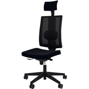 Siège manager Holde+ avec support lombaire ajustable en hauteur noir. Mécanisme synchrone 5 positions. Renfort lombaire en mousse PU recouvert de tissu et réglable en hauteur sur 70mm. Réglage de l'intensité du basculement en fonction du poids de l'utilisateur. Sécurité anti retour. Dossier en résille avec cadre en nylon noir, auto déformant, pour mieux accompagner le dos dans tous les mouvements. H57cm. Réglable en hauteur sur 7cm 13 positions. Tétière réglable en hauteur 65mm et en inclinaison. Assise: L46xP45cm. Mousse d'accueil moelleuse 30mm, 35kg/m3 + mousse dense pour la longévité 20mm - 40kg/m3. Hauteur d'assise réglable de 42 à 55cm. Profondeur d'assise réglable sur 5cm pour un meilleur soutien des jambes et une meilleure circulation sanguine en fonction du gabarit. Tissu non feu M1 et EN 1021.1 et 2 (Allumette/Cigarette). Piètement polypropylène. Roulettes Ø65mm sol moquette. Accoudoirs en option. Label Quality Office. Normes NF EN 1335. Pour utilisateurs jusqu'à 110kg. Garantie 5 ans.