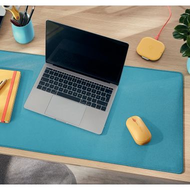 Sous-mains 80x40cm Cosy bleu. Grande surface de 80x40cm pour une couverture maximale. Surface supérieure robuste et mate pouvant être utilisée comme tapis de souris. Compatible avec toutes les souris laser et optiques. Matériau antidérapant pour que les accessoires posés sur le dessus soient stables et sûrs. Epaisseur : 2mm